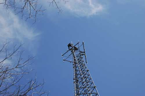 Berkshire Wireless installing our equipment on the cell tower - photo by Ray Lemek