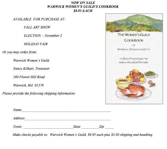 The Guild still has a few cookbooks left. The cookbook, full of recipes from the best cooks and bakers in Warwick, costs $9.95 -- they are great Holiday gifts. Go here for details and ordering information.